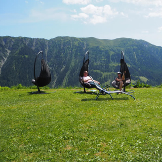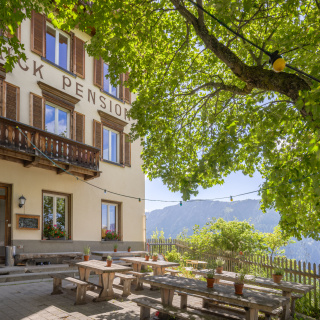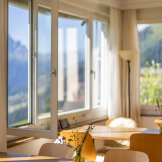 In unserer frisch renovierten Panoramaveranda bieten wir Ihnen eine wahrhaft atemberaubende Aussicht ins Safiental.